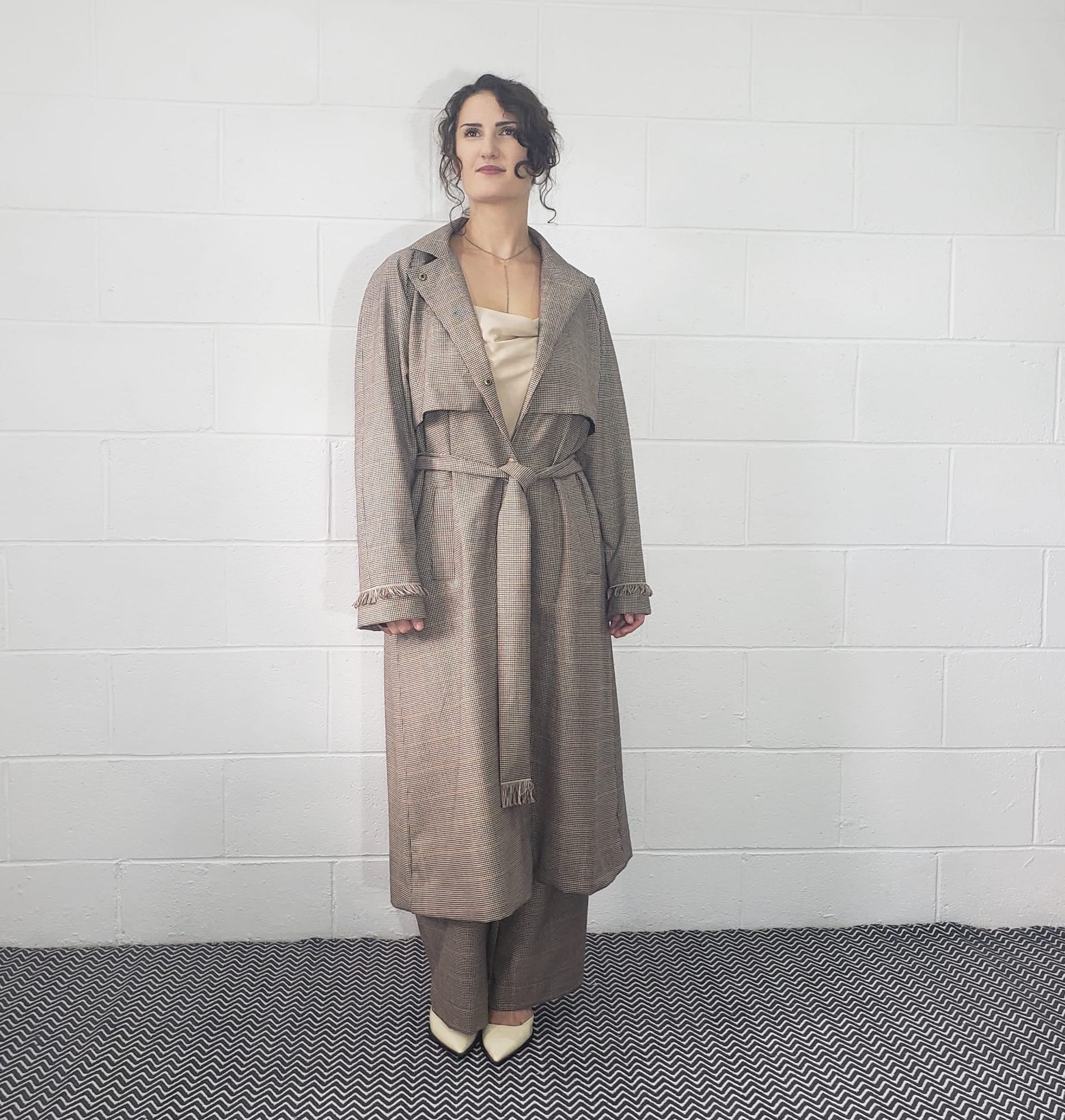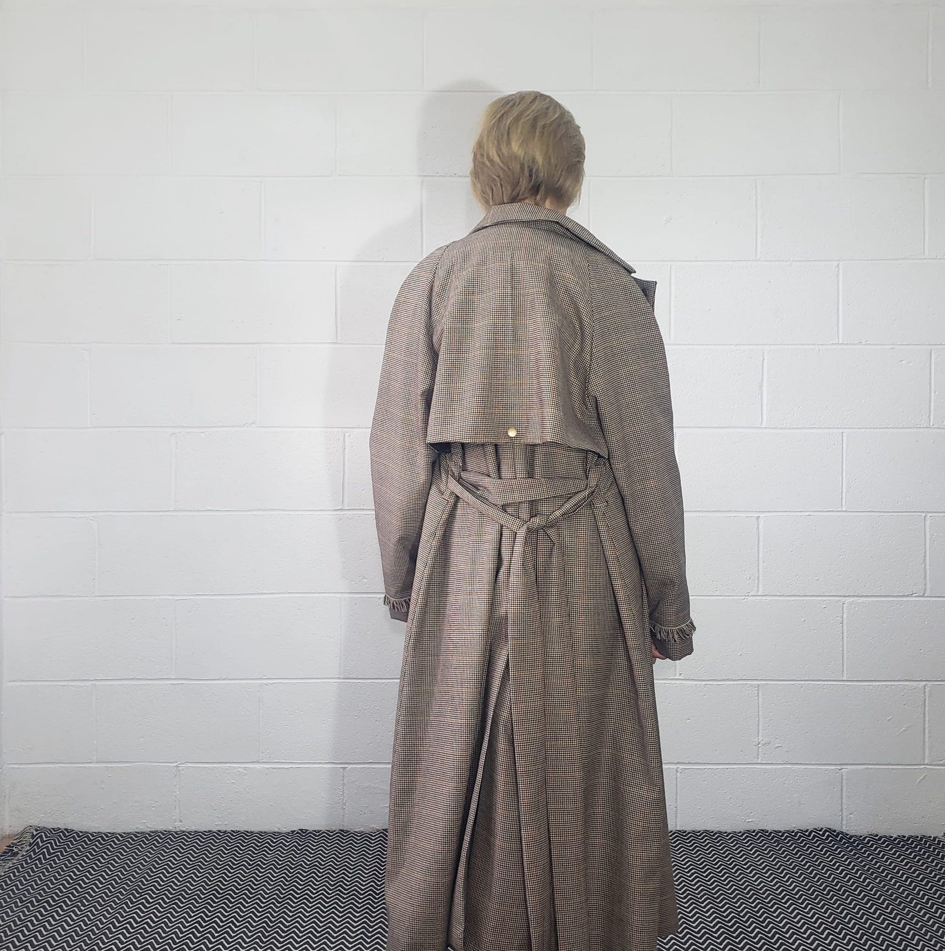 A modern take on a timeless classic, the Houndstooth Trench Coat is crafted from 100% wool using dead-stock fabrics. Double-layered for warmth and structure, it features raglan sleeves, brass poppers, practical pockets, and our signature fringe detail. Finished with a matching belt, this relaxed-fit coat is made to be worn, lived in, and styled endlessly.